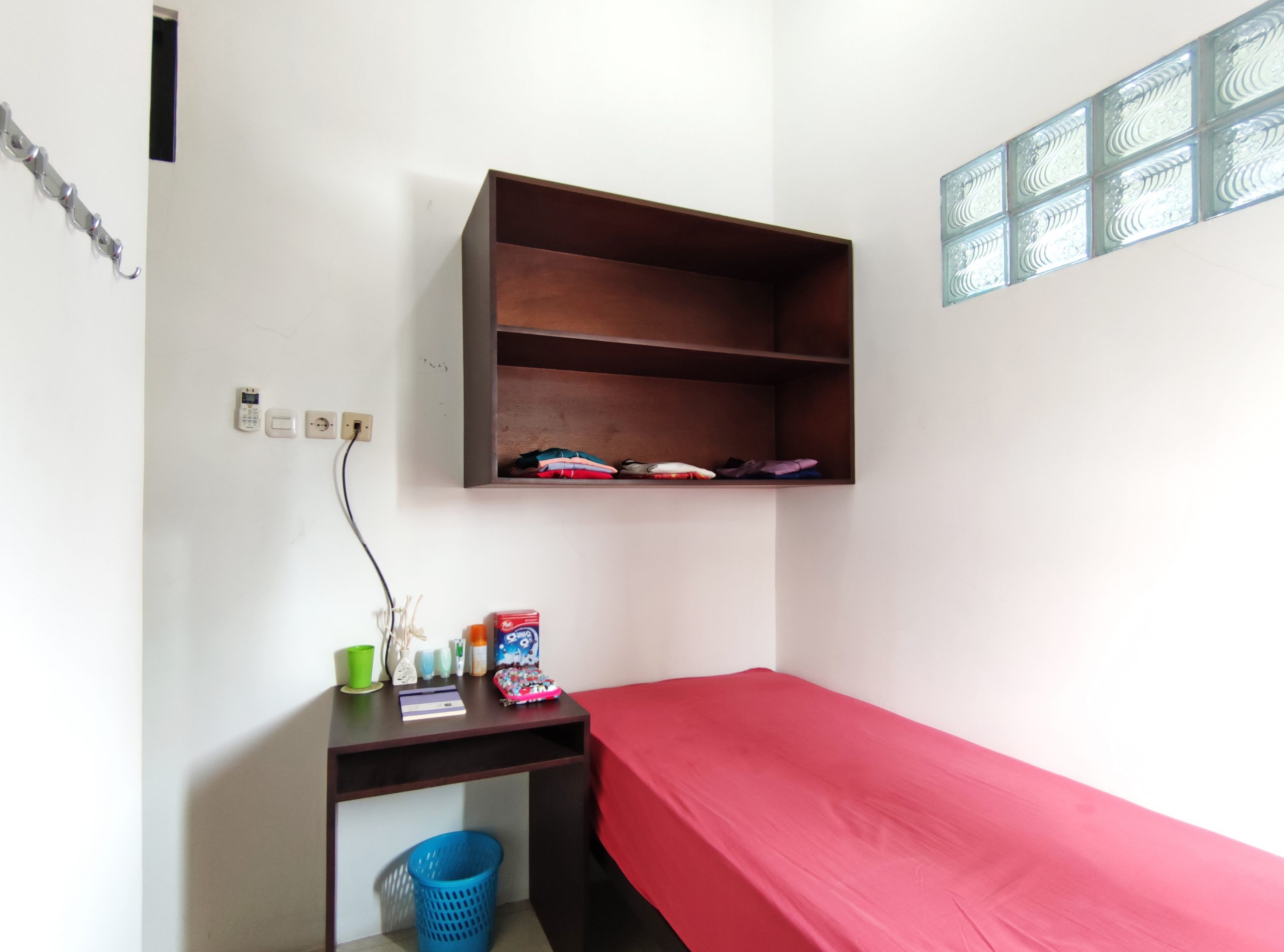 Full furnished : spring bed, lemari pakaian, meja, AC, kamar mandi dalam dengan kloset duduk.