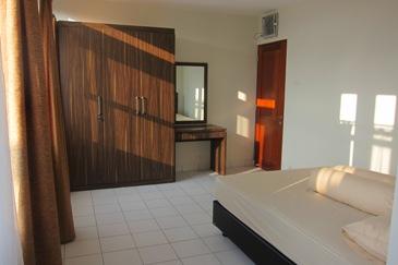 Fasilitas: AC, Exhaust Fan, spring bed, Jaringan TV dan internet, Central Water Heater, Kamar mandi didalam, Wastafel, Satu lemari pakaian, Satu meja dan kursi, Parkir motor/mobil