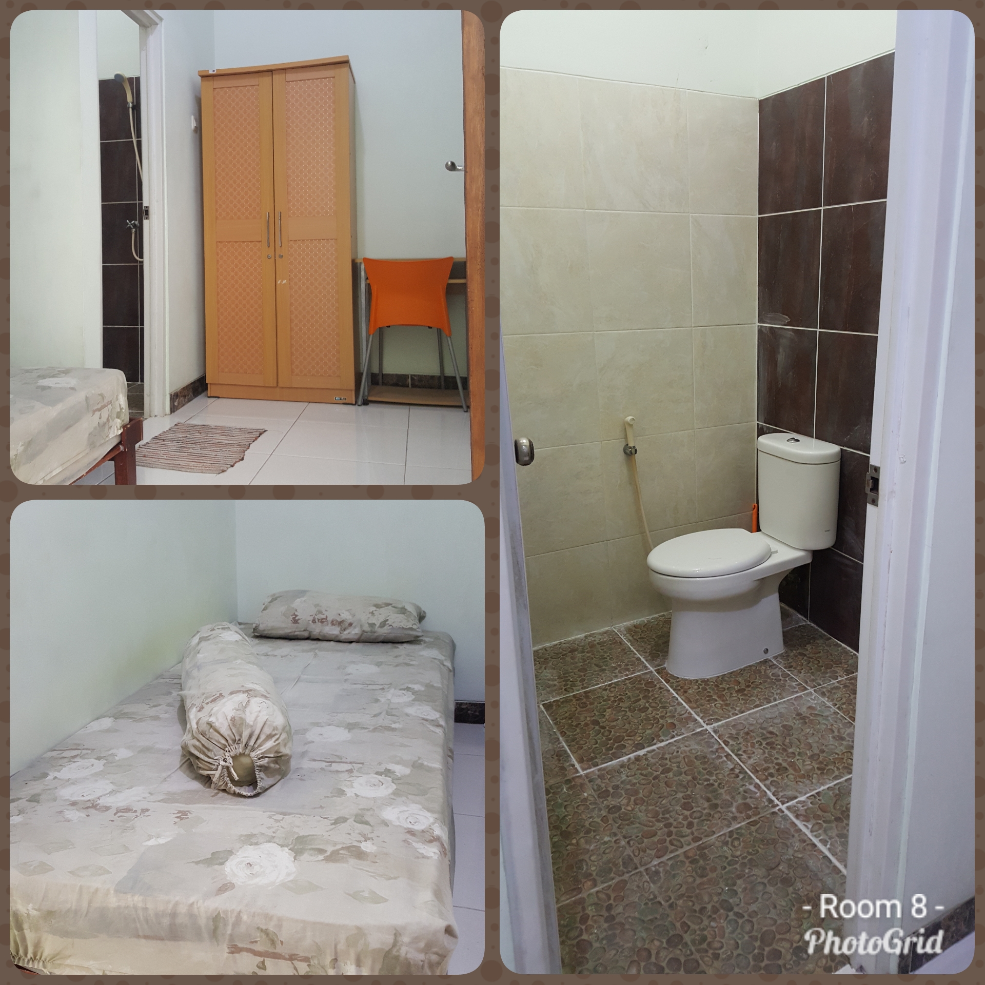 • Fasilitas: AC, Kamar Mandi Dalam, WIFI Internet, Lemari, Spring Bed, Meja dan Kursi.