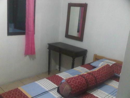 Fasilitas: Tempat tidur, lemari, kipas angin, konsul, cermin dan kamar mandi berada di dalam.