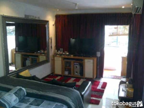 AC, TV LCD 40 inch, Lemari pakaian, tempat tidur king size, sofa, buffet, kamar mandi, dapur, teras, water heater, parkiran mobil luas.